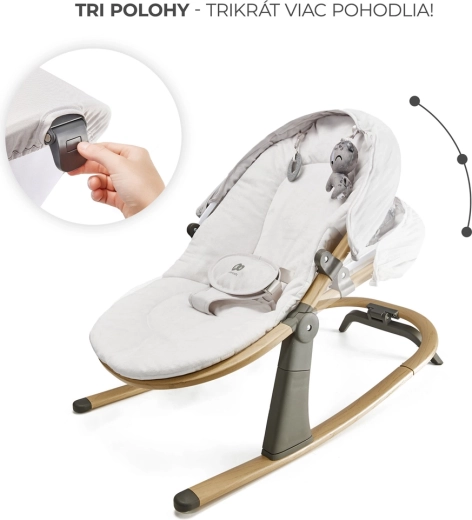 Passez d’un doux balancement à un transat stable d’un seul geste. Les trois positions réglables du dossier assurent un soutien adapté pour le repos comme pour le jeu, de la naissance jusqu’à 9 kg.