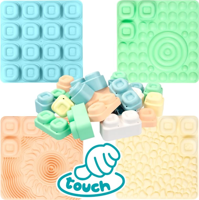 Le set MOCHTOYS Play & Squish offre un environnement sûr et stimulant pour explorer textures, formes et couleurs. Chaque tapis possède une texture différente qui favorise la perception du toucher, tandis que les cubes souples et élastiques sont faciles à saisir même par de petites mains et invitent à construire, trier et jouer librement.
