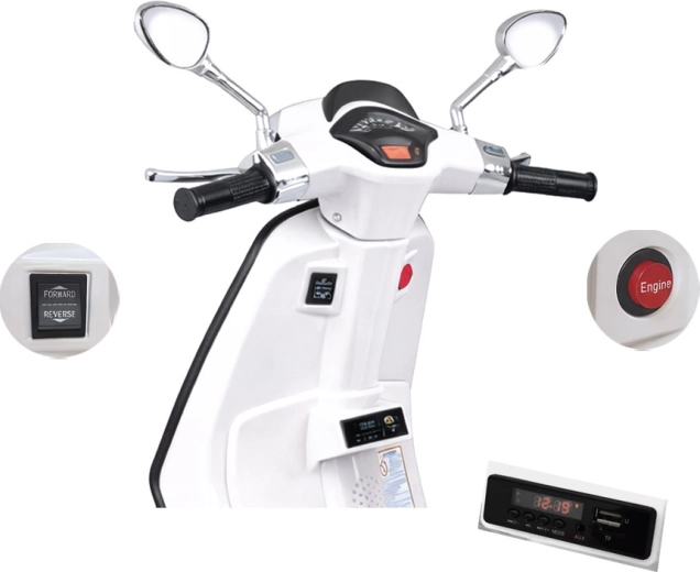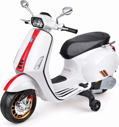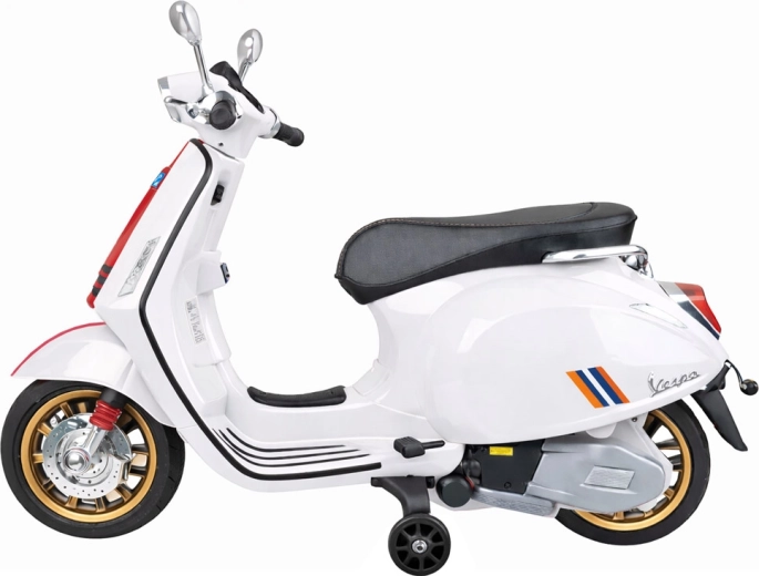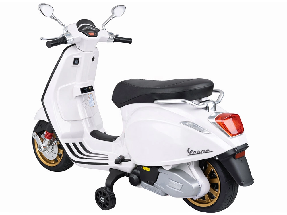 Scooter électrique pour enfants VESPA avec mélodies et roues stabilisatrices – Blanc