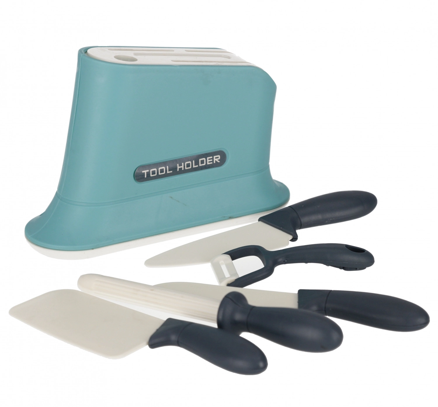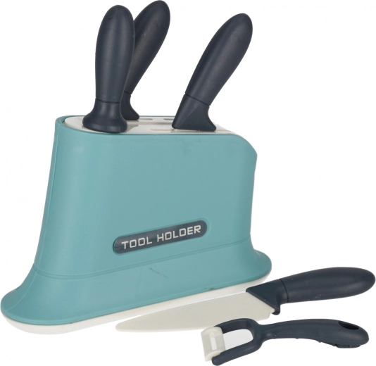 Set d’entraînement sûr pour les petits chefs : support pour les ustensiles, plusieurs couteaux et un éplucheur avec manches ergonomiques pour une prise en main confortable.