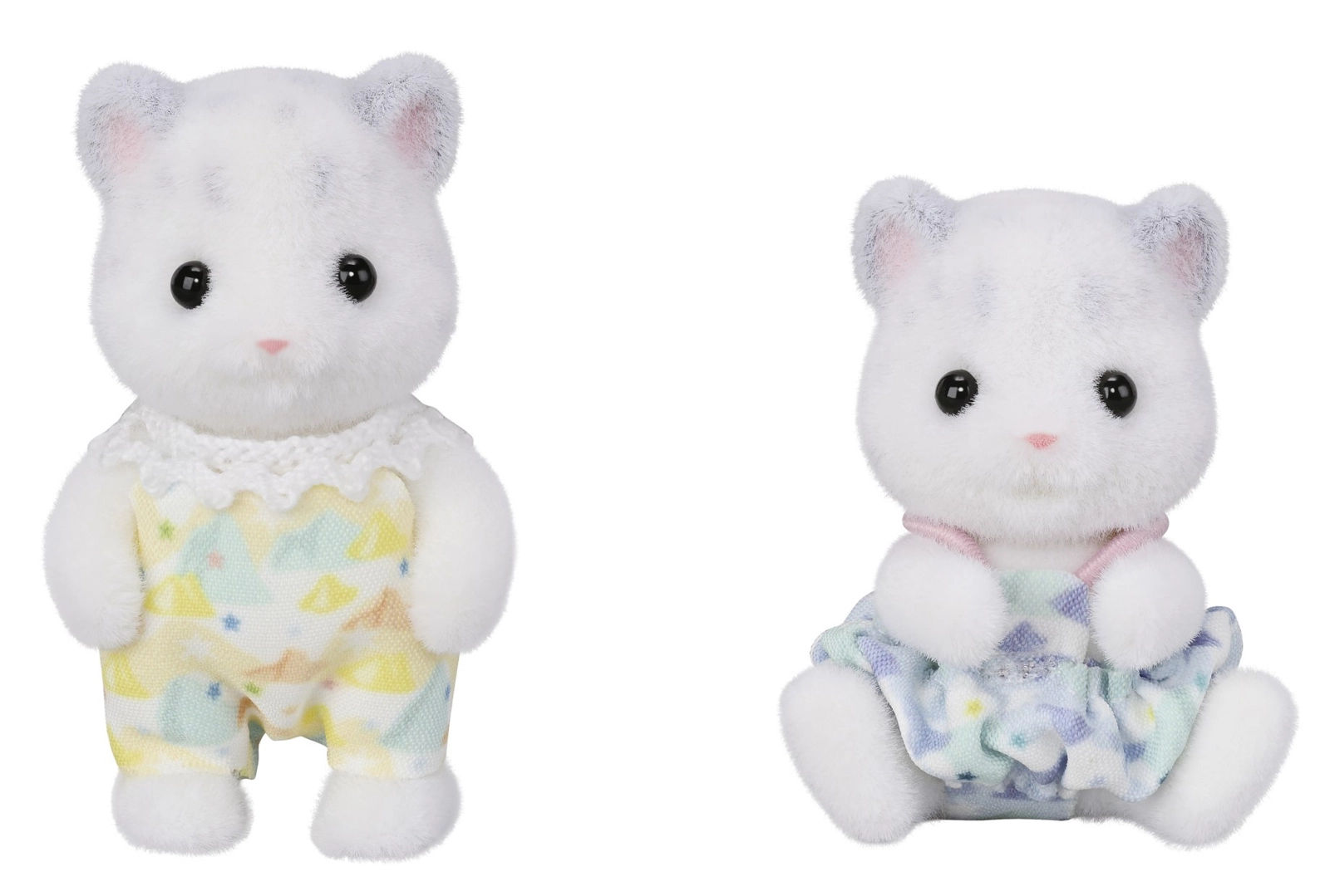Les figurines sont recouvertes d’un doux velours et habillées d’ensembles pastel assortis – un rendu réaliste et agréable au toucher.