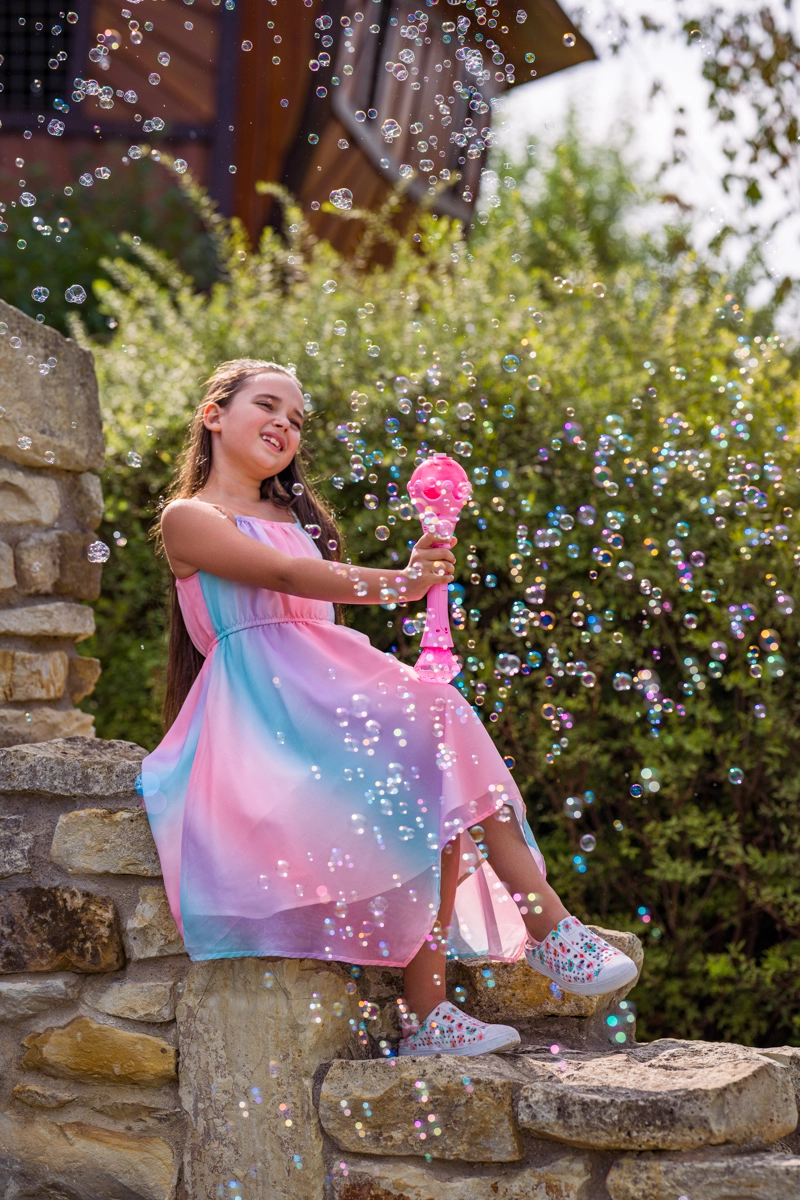 Le soufflage automatique crée de nombreuses bulles sans effort – idéal pour le jardin et les fêtes.