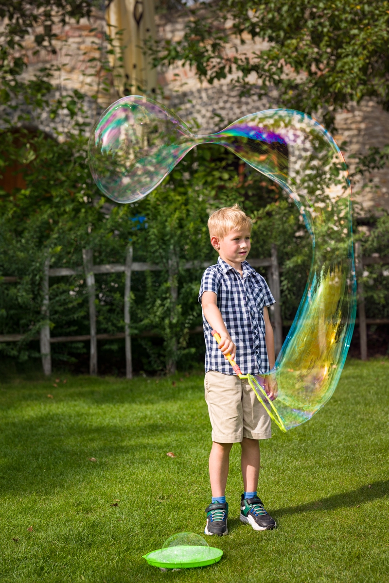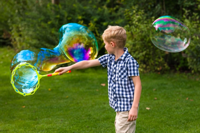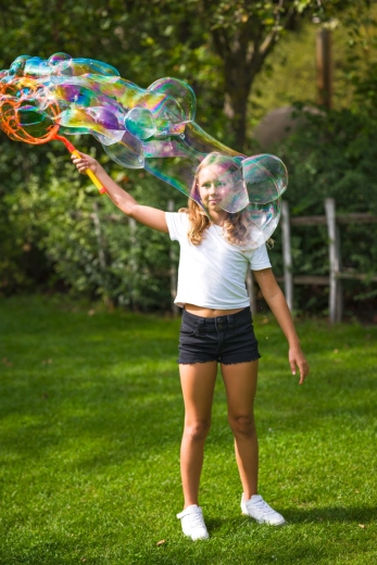 Alternez l’embout pour des bulles géantes ou pour une nuée de petites bulles – le résultat est toujours spectaculaire.
