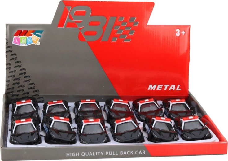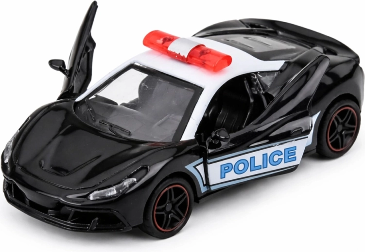 Voiture de sport de police en métal 1:43 avec mécanisme pull-back, noire et blanche, portes ouvrantes