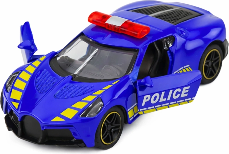 Cette élégante voiture de sport de police ravira les jeunes fans de voitures rapides ainsi que de gyrophares et sirènes. Grâce à sa réalisation réaliste, ses vitres transparentes et son design sportif, elle se distingue autant pendant le jeu que sur l’étagère d’un jeune collectionneur.