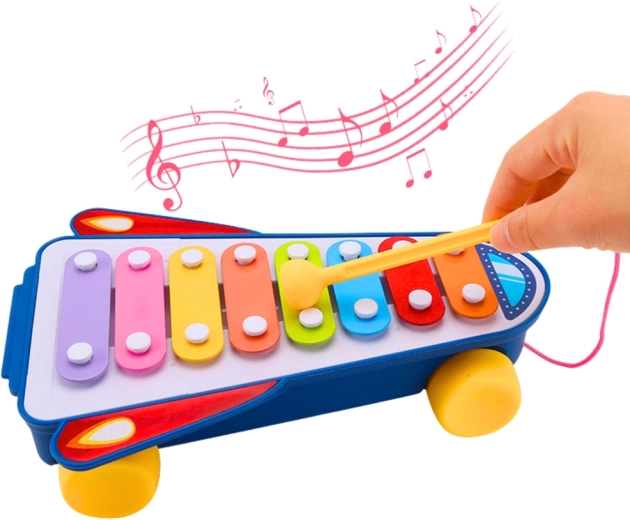 Amusant petit piano xylophone pour enfants en forme de fusée, qui associe découverte musicale et mouvement. Grâce aux lames colorées et à la baguette fournie, il développe l’ouïe, les capacités de coordination et la motricité fine. Le déplacement sur roulettes avec un effet sonore pendant la marche favorise le jeu actif et les premières expériences musicales.