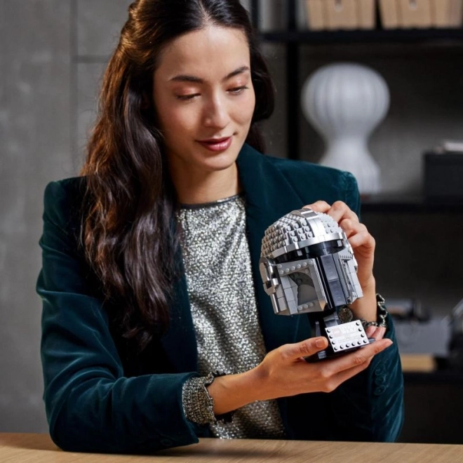 Les pièces laquées et les nuances de gris imitent fidèlement l’aspect métallique du beskar et dessinent avec précision les contours du casque du Mandalorien.