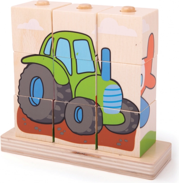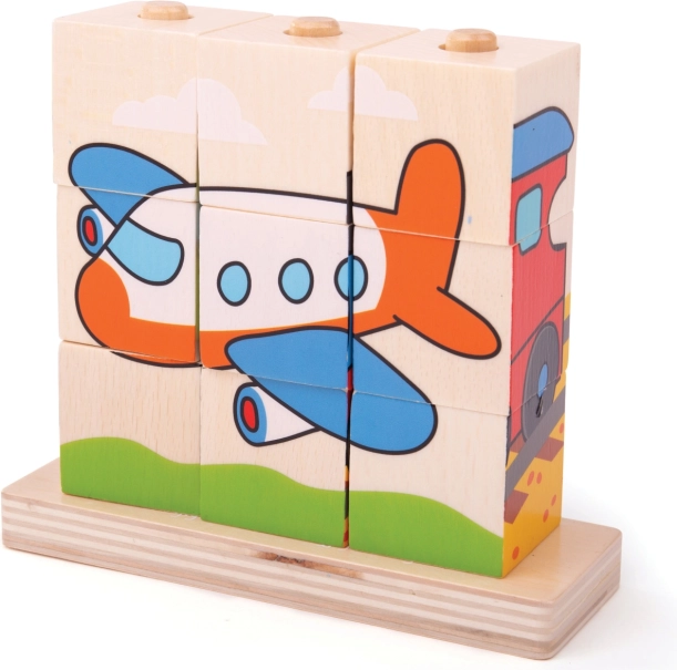 Puzzle en bois Bigjigs Baby Véhicules est un jouet idéal pour le développement des compétences motrices et la coordination main-œil chez les enfants. Il contient 10 pièces de blocs en bois avec quatre scènes de transport : train, voiture, tracteur et avion.
