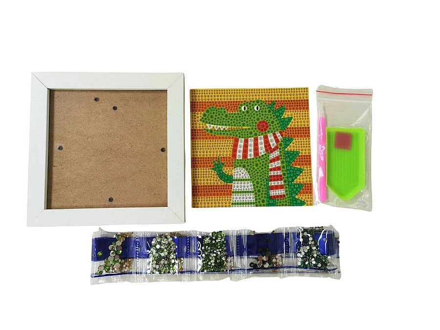 Ce kit créatif de peinture diamant sur le thème du crocodile ravira enfants et adultes. Grâce au modèle en couleur et à l’application simple des diamants à l’aide du stylet et du gel silicone, chacun peut réaliser une belle image étincelante. L’œuvre terminée peut être fièrement exposée dans le cadre blanc fourni.