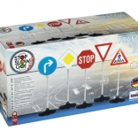 L’ensemble de cinq panneaux les plus utilisés (par ex. STOP, Cédez le passage, Route prioritaire, Direction obligatoire, Passage piéton) aide les enfants à assimiler rapidement les règles de base.