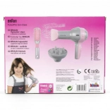 Nous vous présentons le sèche-cheveux pour enfants Braun avec diffuseur et brosse idéal pour les petites coiffeuses. Ce produit est fabriqué sous licence de la société Braun, ce qui lui confère un aspect réaliste, semblable à un véritable appareil. Le produit est totalement sûr, le sèche-cheveux souffle uniquement de l'air sans chauffer, garantissant ainsi la sécurité des mains des enfants.