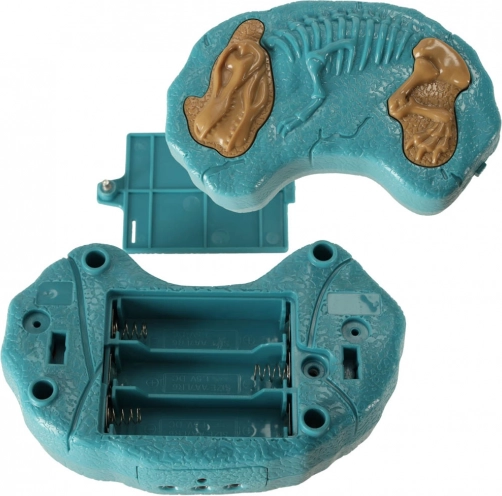 La télécommande ressemblant à un fossile avec deux boutons facilite la commande des mouvements et des sons du dinosaure.