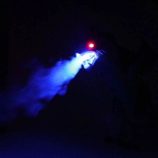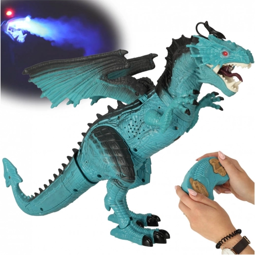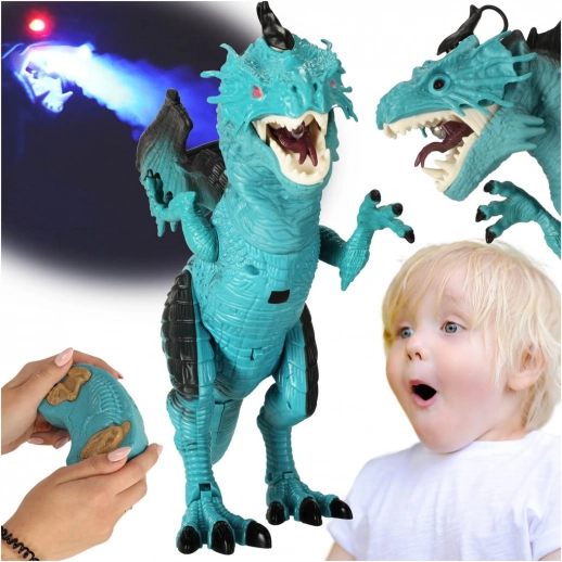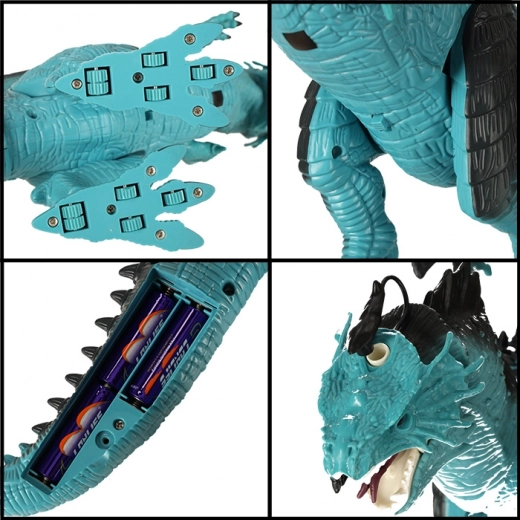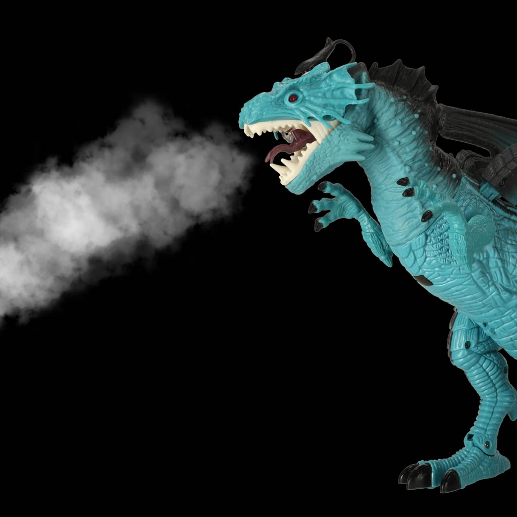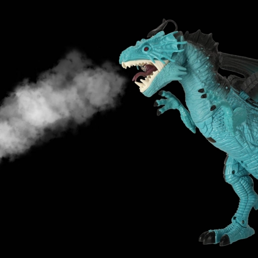 Le dinosaure émet de la vapeur qui imite un souffle de feu, augmentant ainsi l'attrait et la magie du jeu.