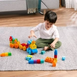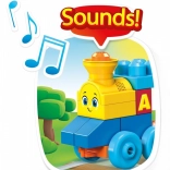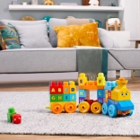 Un train de construction ludique et éducatif pour les tout-petits qui apprend l’alphabet en jouant. Grâce à 50 pièces, des briques colorées avec des lettres et des sons de train réalistes, les enfants entraînent leur motricité fine, leur créativité et l’assemblage de mots. Il suffit d’appuyer sur la cheminée pour lancer une chanson joyeuse ou des sons – jouet idéal pour les enfants à partir de 1 an.