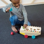 Cinq blocs colorés, faciles à saisir, aident les enfants à reconnaître les formes et les couleurs, tout en renforçant la motricité fine et la coordination œil-main.