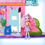 Entrez dans l’univers ENCHANTIMALS avec une maison de ville magique de 70 cm de hauteur et trois étages remplis de possibilités de jeu. Vous y trouverez un café avec patio, un salon avec cuisine, une chambre et une piscine sur le toit, sans oublier le balcon, l’escalier de secours et des portes qui s’ouvrent avec une chatière pour l’animal de compagnie. Sont inclus la poupée Palmer Pomeranian (15 cm), son chien Pommy et plus de 15 accessoires pour une imagination sans limite et un jeu créatif. Plusieurs zones de jeu, accessoires riches et design féerique raviront chaque petit conteur d’histoires.