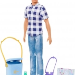 Poupée Ken, lunettes de soleil, jumelles, carte, bouteille « d’eau », « collation », glacière de voyage ouvrante