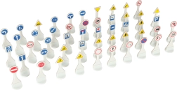 50 pcs de panneaux de signalisation (carton, hauteur env. 5 cm), 50 pcs de socles en plastique, description en tchèque et en slovaque de la signification des panneaux