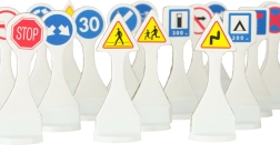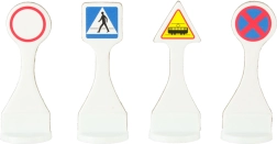 Un large choix des panneaux les plus utilisés, de formes et de couleurs variées, permet aux enfants de créer de véritables situations de circulation et d’apprendre en jouant en toute sécurité.