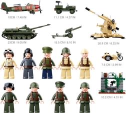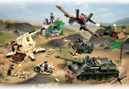 Construisez un char, un véhicule tout-terrain, un avion, une moto et des pièces d’artillerie. Des détails réalistes et des parties mobiles permettent de créer des scénarios de combat palpitants.