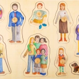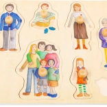 - 9 pièces à encastrer : maman, papa, bébé, petit frère, petite sœur, grand-mère, grand-père, chien et amis