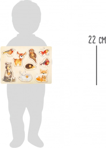 Puzzle en bois small foot Animaux de la forêt avec 9 pièces et petites poignées pour une prise en main facile. Développe la motricité fine et la patience. Convient dès 12 mois.