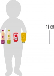 Chaque bouteille comporte des illustrations bien visibles (huile, vinaigre, ketchup, moutarde) permettant aux enfants d’identifier facilement le contenu et de les intégrer au jeu de cuisine.