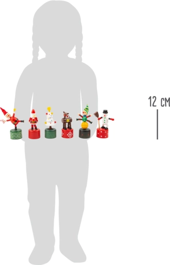 Lot de 12 pcs. Ce bonhomme de neige bouge-t-il vraiment ? Oui, tout à fait. Plusieurs figurines de Noël en bois se balancent d’avant en arrière, mais seulement si vous appuyez sur le bouton sous leur socle. Idéal comme cadeau pendant l’Avent.