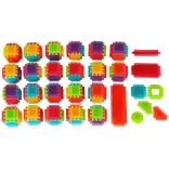Les blocs sont fabriqués en plastique de haute qualité, ils sont très légers, flexibles et en même temps super résistants. Ils aident à apprendre de nouvelles formes et couleurs et développent les compétences manuelles. Les blocs sont conçus pour stimuler les sens en développement de l’enfant : la vue grâce à des couleurs vives et le toucher grâce à leur forme originale et à leur mode d’assemblage. Des blocs qui offrent d’incroyables possibilités de jeu créatif ! En plus des combinaisons traditionnelles comme avec des blocs ordinaires, ces blocs peuvent également être connectés sur toute la surface d’un côté, ce qui offre une possibilité de création supplémentaire. Ils peuvent être utilisés pour construire des bâtiments, des robots et d’autres structures !