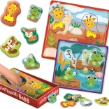 Découvrez un ensemble didactique ludique où les enfants associent les bébés à leur maman et leur papa, apprennent à connaître les animaux et leur environnement naturel tout en entraînant patience, attention et motricité fine. L’ensemble est conçu pour les plus petits – les pièces à contour simples se tiennent bien en main et s’insèrent facilement.