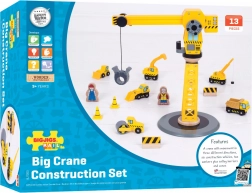Ce kit de construction en bois de qualité, doté d’une grue pivotante et d’un crochet magnétique, offre aux enfants d’innombrables possibilités de jeu. Grâce à sa conception robuste et à des matériaux sûrs, il est idéal pour un usage quotidien et le développement des compétences. La couleur jaune vive des véhicules de chantier attire immédiatement l’attention des enfants.