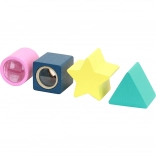 Les enfants peuvent insérer différentes formes dans les ouvertures correspondantes, ce qui développe leur motricité fine et leur perception spatiale.