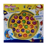 Après l’allumage, le plateau de jeu se met à tourner et les poissons commencent à ouvrir et fermer la bouche. Prends l’une des quatre cannes à pêche et essaie d’attraper le plus de poissons possible. Le jeu est facile à comprendre, dynamique et permet aux enfants d’exercer la coordination œil-main et la concentration.