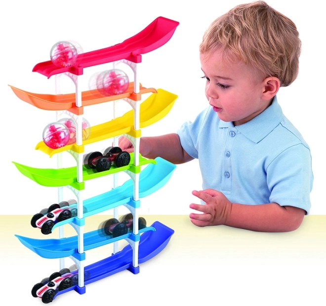 Ce circuit enfant avec petite voiture offre une manière unique de développer la motricité des enfants. Grâce à trois billes colorées et à l'observation fascinante de leur mouvement le long de la piste, il offre du divertissement tout en favorisant un apprentissage créatif.