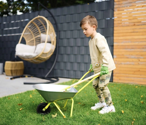 - Idéal pour jouer en plein air : ratissage des feuilles, transport de matériaux, premières tâches au jardin.