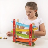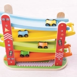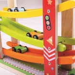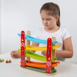 Le jouet favorise le développement de la motricité fine et la coordination main-œil lorsque les enfants regardent les petites voitures descendre les pistes inclinées.