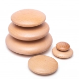 Ce jeu d’équilibre ouvert, sans consignes, invite les enfants à laisser libre cours à leur imagination : construire des tours, créer des motifs, trier par taille ou transformer les galets en une décoration élégante pour la chambre. L’aspect naturel et la surface lisse du bois offrent une expérience tactile agréable et un jeu calme et concentré.