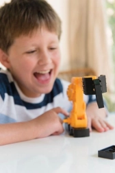 Le bras se déplace vers le haut et vers le bas, et ses pinces s’ouvrent et se ferment pour soulever facilement de petits objets. Un excellent entraînement de la motricité fine et de la concentration.