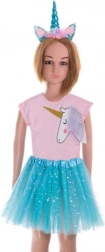 Costume de carnaval licorne – ensemble enfant avec serre-tête et jupe en tulle – Bleu