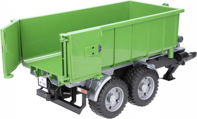 Cette remorque BRUDER réaliste au design vert-noir dote chaque tracteur d'un conteneur polyvalent. Grâce au mécanisme basculant et à la paroi arrière ouvrante, le déchargement est simple; le conteneur peut en outre être retiré du châssis et utilisé séparément.