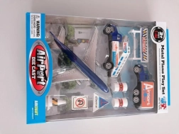 Avion en métal, véhicules d’aéroport, signalisation routière