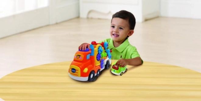 La voiture de service Tut Tut de VTech est le compagnon idéal pour les enfants qui veulent s’amuser tout en apprenant. Le jouet peut transporter jusqu’à quatre petites voitures Tut Tut et regorge d’éléments interactifs qui développent la motricité et l’imagination. Grâce aux points de contact « Smart point », il joue trois chansons et propose de nombreuses phrases amusantes, ce qui aide à développer le vocabulaire des enfants.