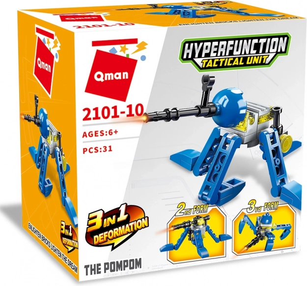 Le jeu de construction Qman robot pompom 3 en 1, variable, avec 31 pièces, offre des heures de divertissement créatif. Construisez 3 modèles différents, combinez les pièces et profitez de la compatibilité avec LEGO, Sluban et Cobi. Plastique ABS de qualité, assemblage facile et pour les enfants dès 6 ans.