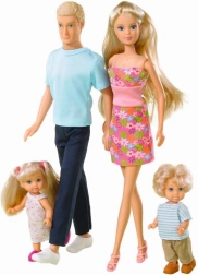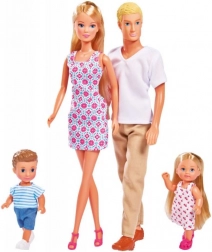 Le coffret familial de poupées Steffi est parfait pour le développement de la créativité des enfants et leurs capacités de narration. Le set comprend quatre poupées : Steffi, Kevin et leurs enfants Timmy et Evi, toutes vêtues dans un style casual elegance. Les hauteurs des poupées sont de 30 cm, 29 cm, 12 cm et 12 cm.