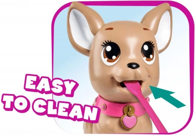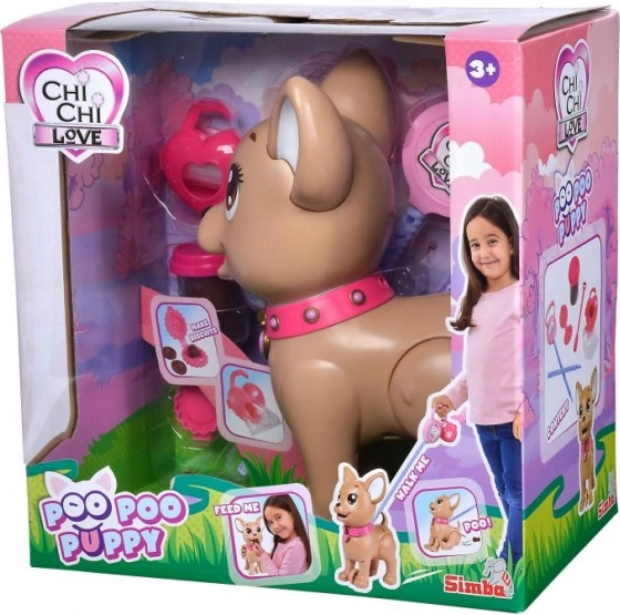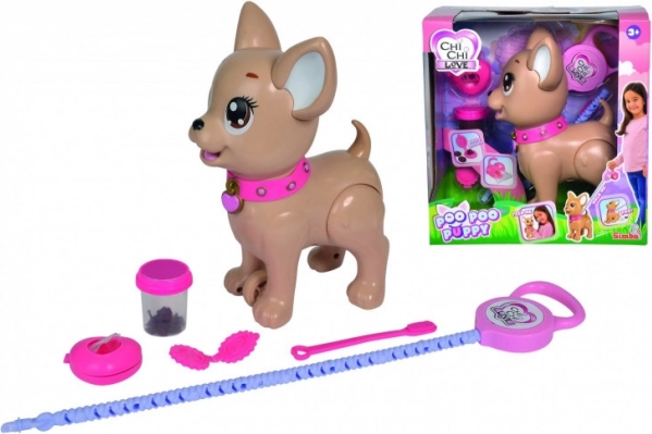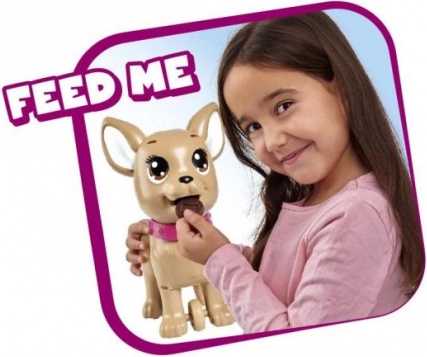 Le chihuahua interactif Poo Poo de CHI CHI LOVE offre aux enfants un jeu à la fois réaliste et sûr autour de l’élevage d’un animal. Prépare une friandise en pâte à modeler, nourris le chien et pars en promenade – après une légère pression sur la laisse, le chien plie les pattes arrière et fait une crotte, que l’on peut facilement ramasser grâce aux sachets fournis.