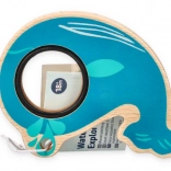 La baleine turquoise en bois et plastique tient parfaitement dans la petite main de l’enfant. Elle aide à entraîner la prise en main, la coordination œil–main et les premières manipulations d’objets, de manière ludique.