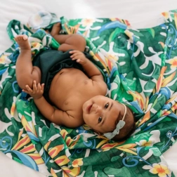 • Utilisation polyvalente : couverture, emmaillotage, petite couverture pour poussette, protection pendant l’allaitement et bavoir.