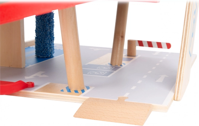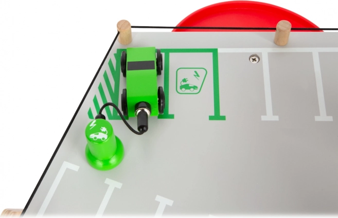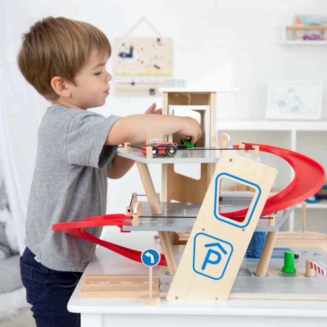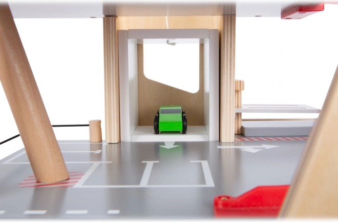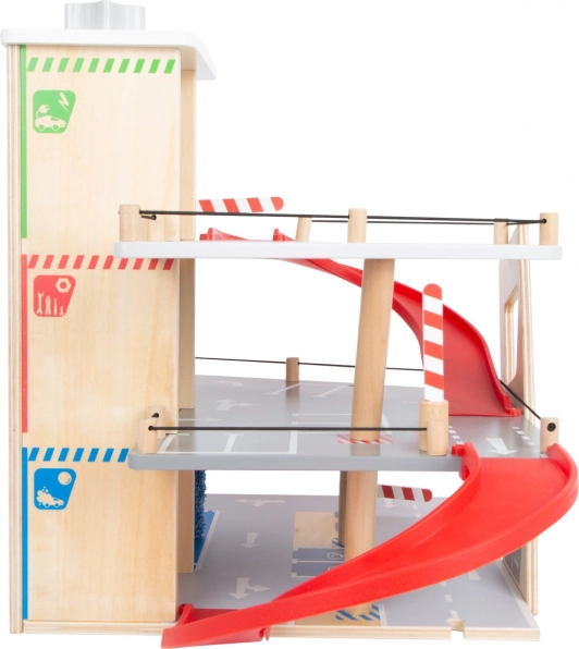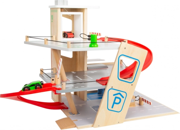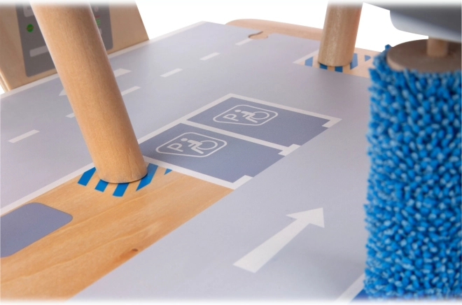 Découvrez un parking en bois robuste sur trois niveaux, avec un ascenseur fonctionnel et des rampes fluides pour des jeux de voitures sans fin. Inclus: deux voitures, une station-service, une borne de recharge pour véhicules électriques, une rampe élévatrice, un lave-auto avec brosses et des barrières mécaniques à chaque étage. La barrière en caoutchouc assure une conduite sûre et le marquage détaillé développe la connaissance du code de la route.