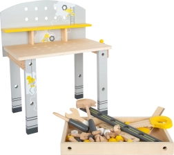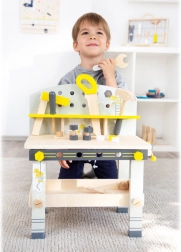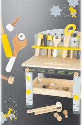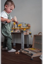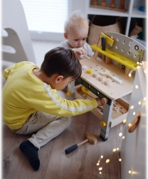 L'établi est idéal pour les enfants à partir de 3 ans et offre la possibilité de coopérer lors de son assemblage, renforçant ainsi encore plus les compétences manuelles et l'imagination.
