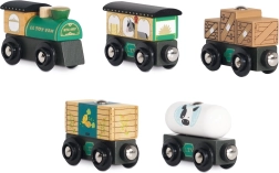 Les wagons se relient grâce à de puissants aimants, ce qui facilite la manipulation du train. L’ensemble est compatible avec la plupart des circuits ferroviaires en bois, et s’intégrera donc sans difficulté à votre collection.